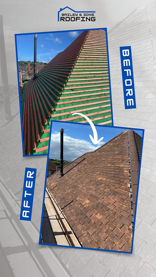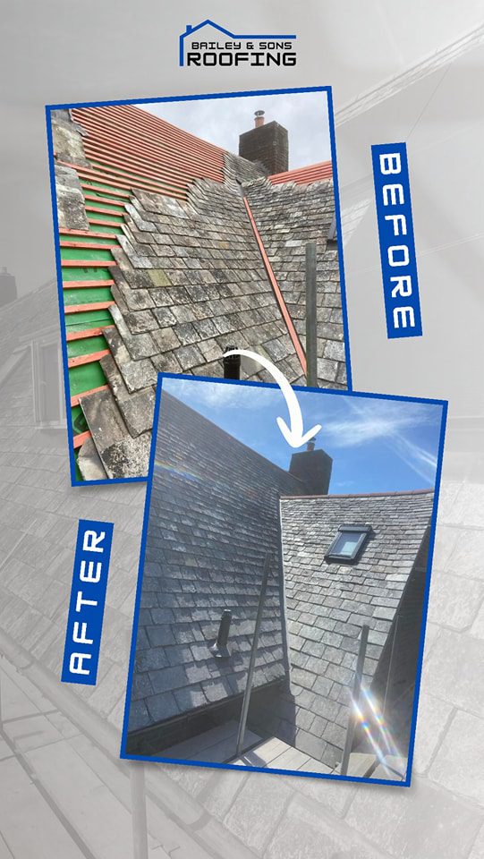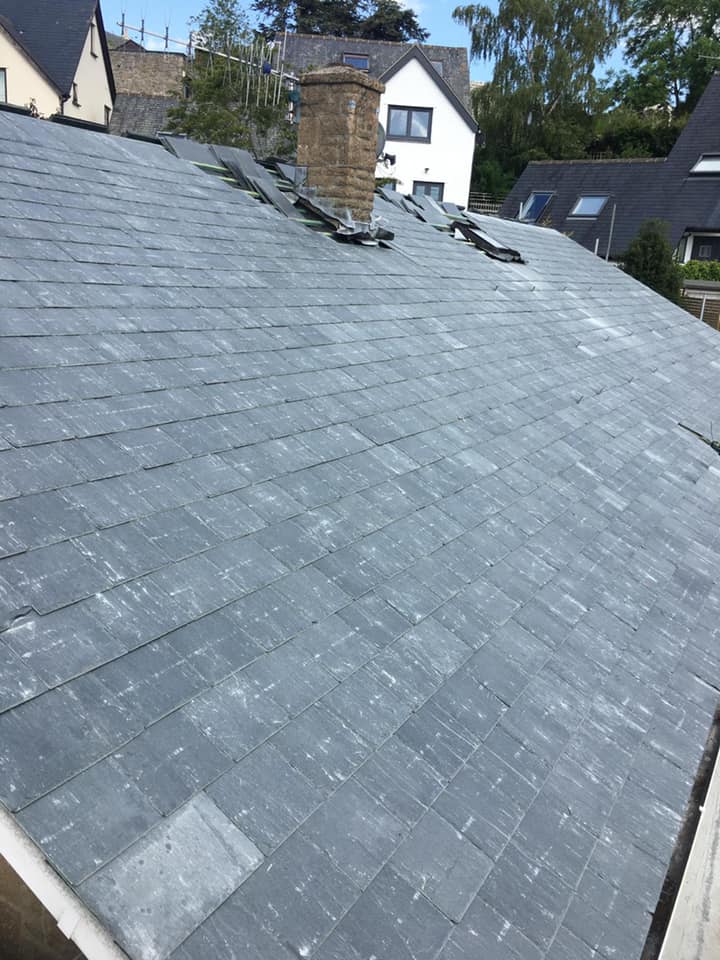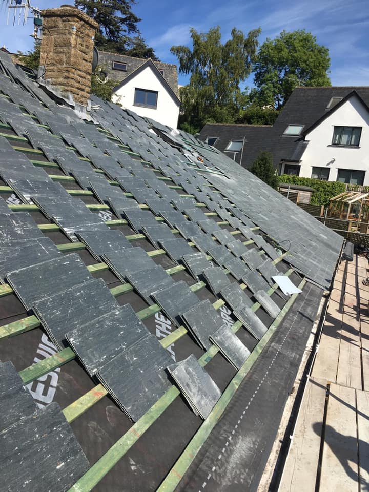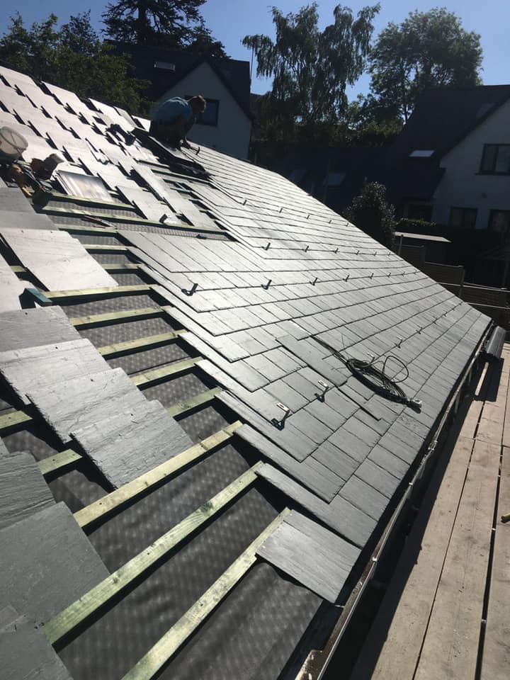 Complete re-roof with Brazilian slates and clay ridge tiles