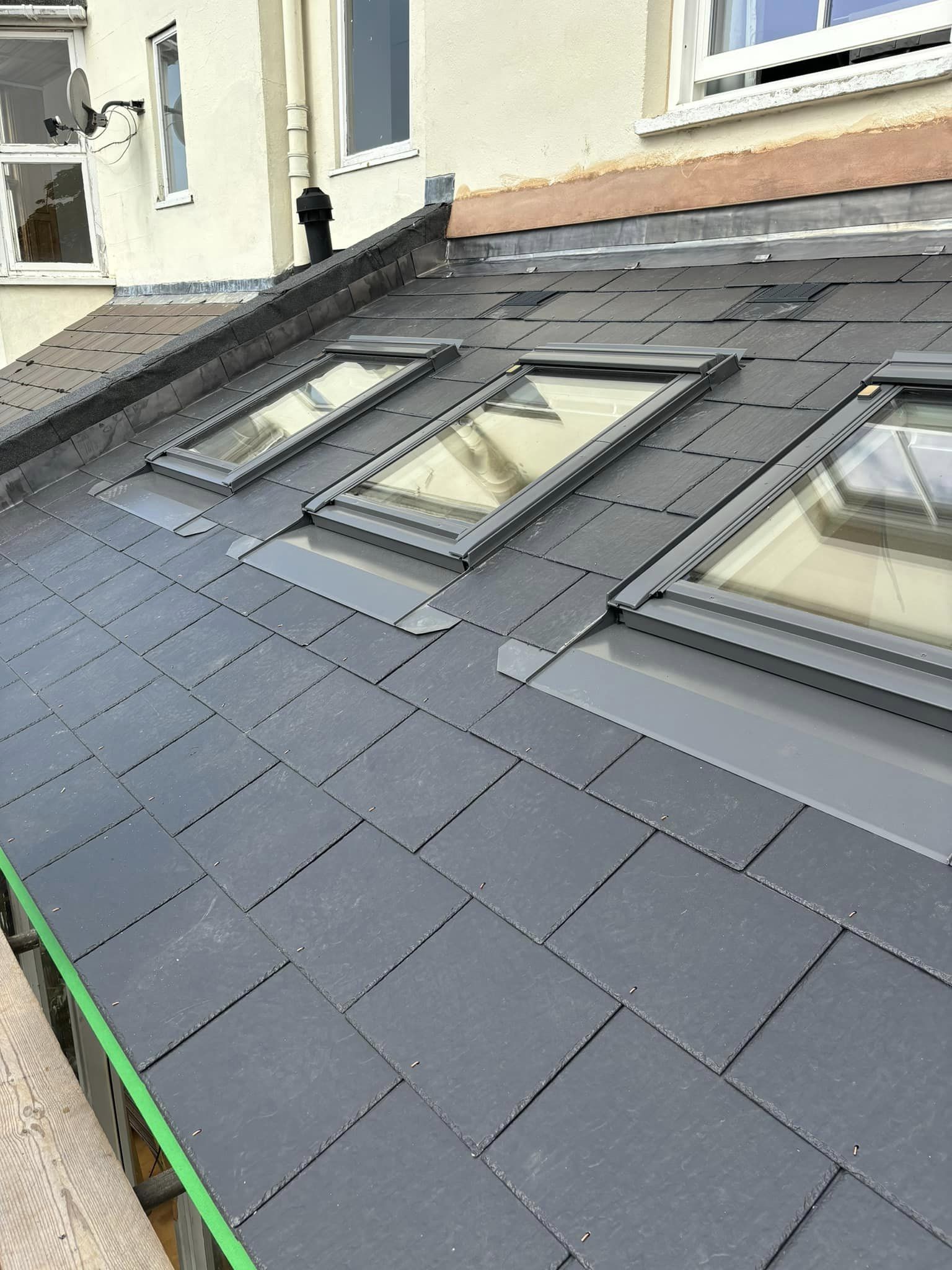 EDPM rubber roof with Spanish natural slates.